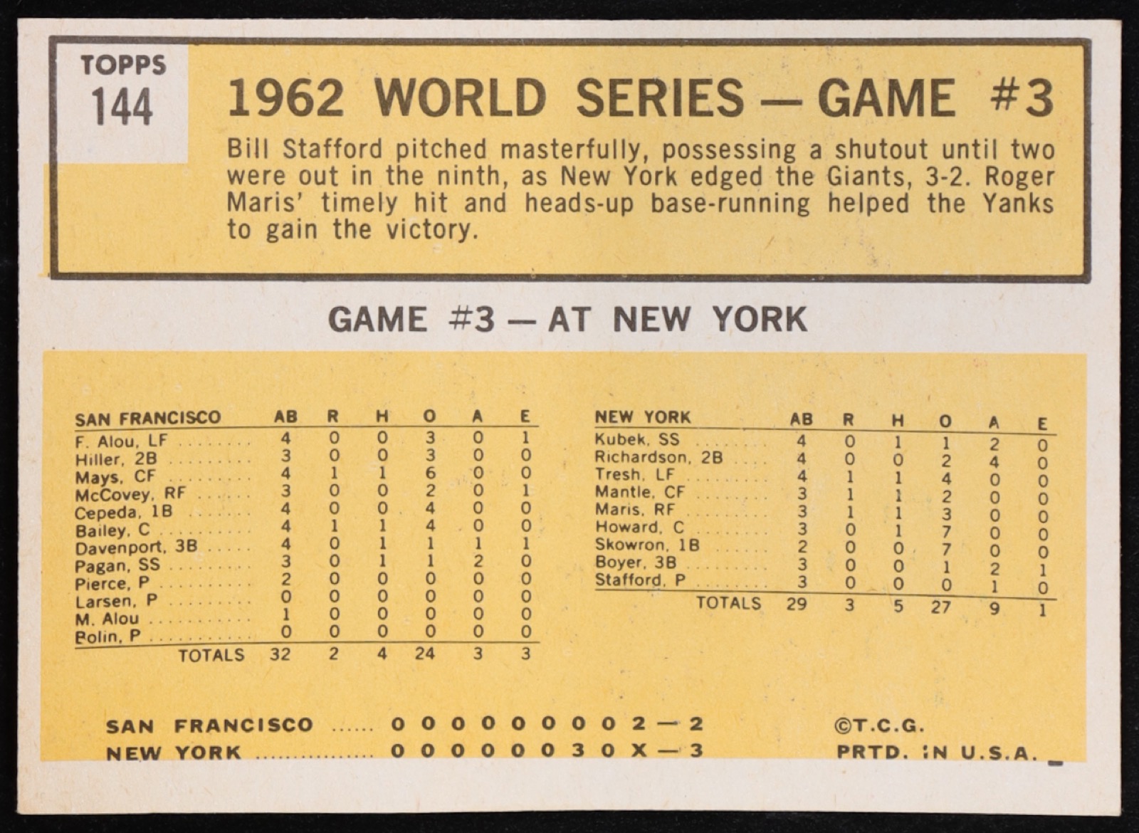 Roger Maris 1963 Topps #144 World Series Game 3