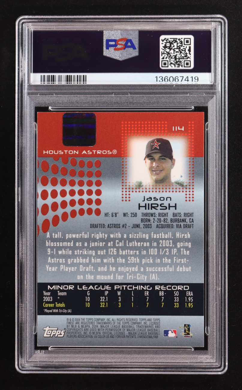 Jason Hirsh 2004 Topps Finest Autograph #114 RC (PSA 9)