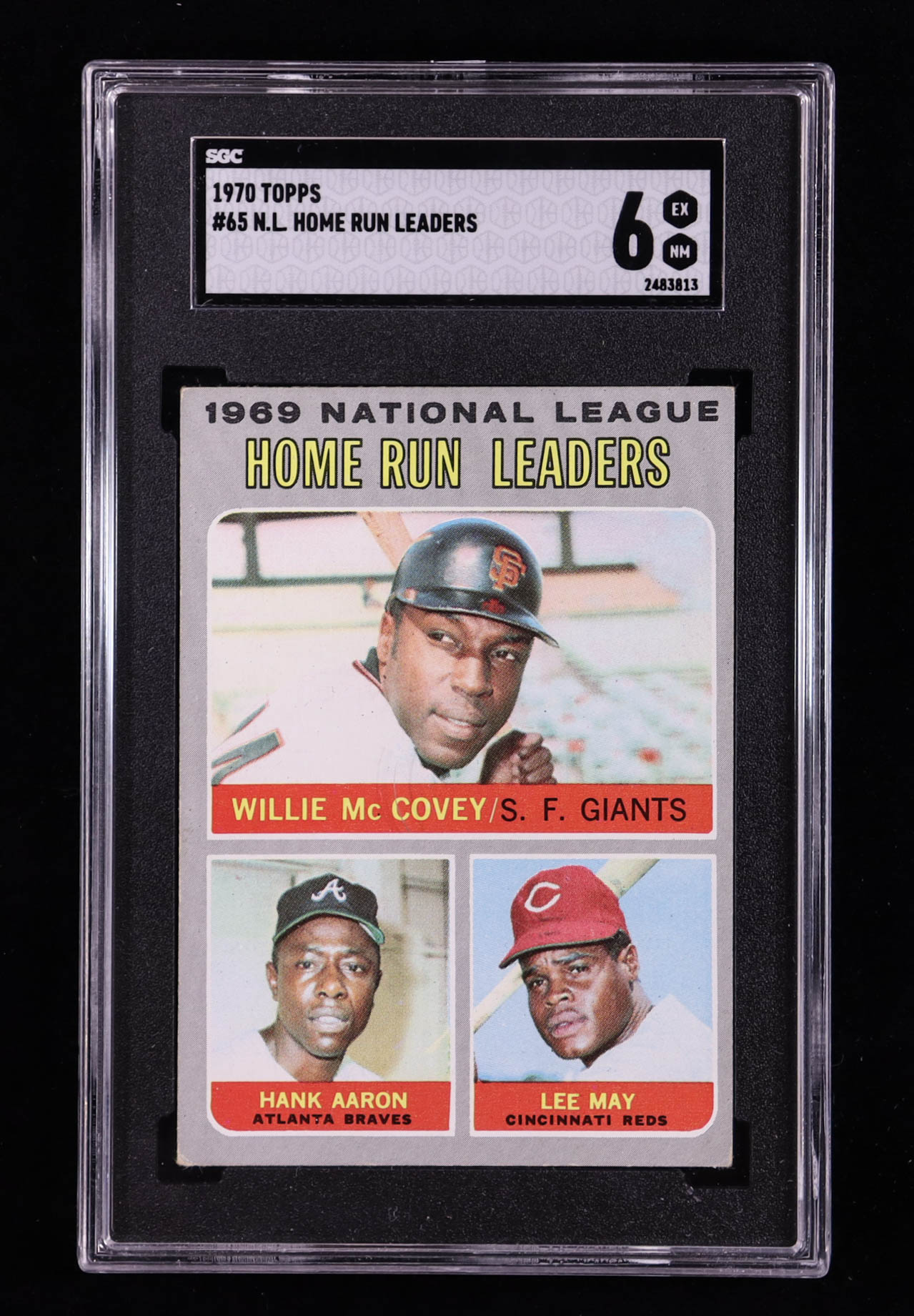 Willie McCovey / Hank Aaron / Lee May 1970 Topps NL Home Run Leaders #65 (SGC 6)