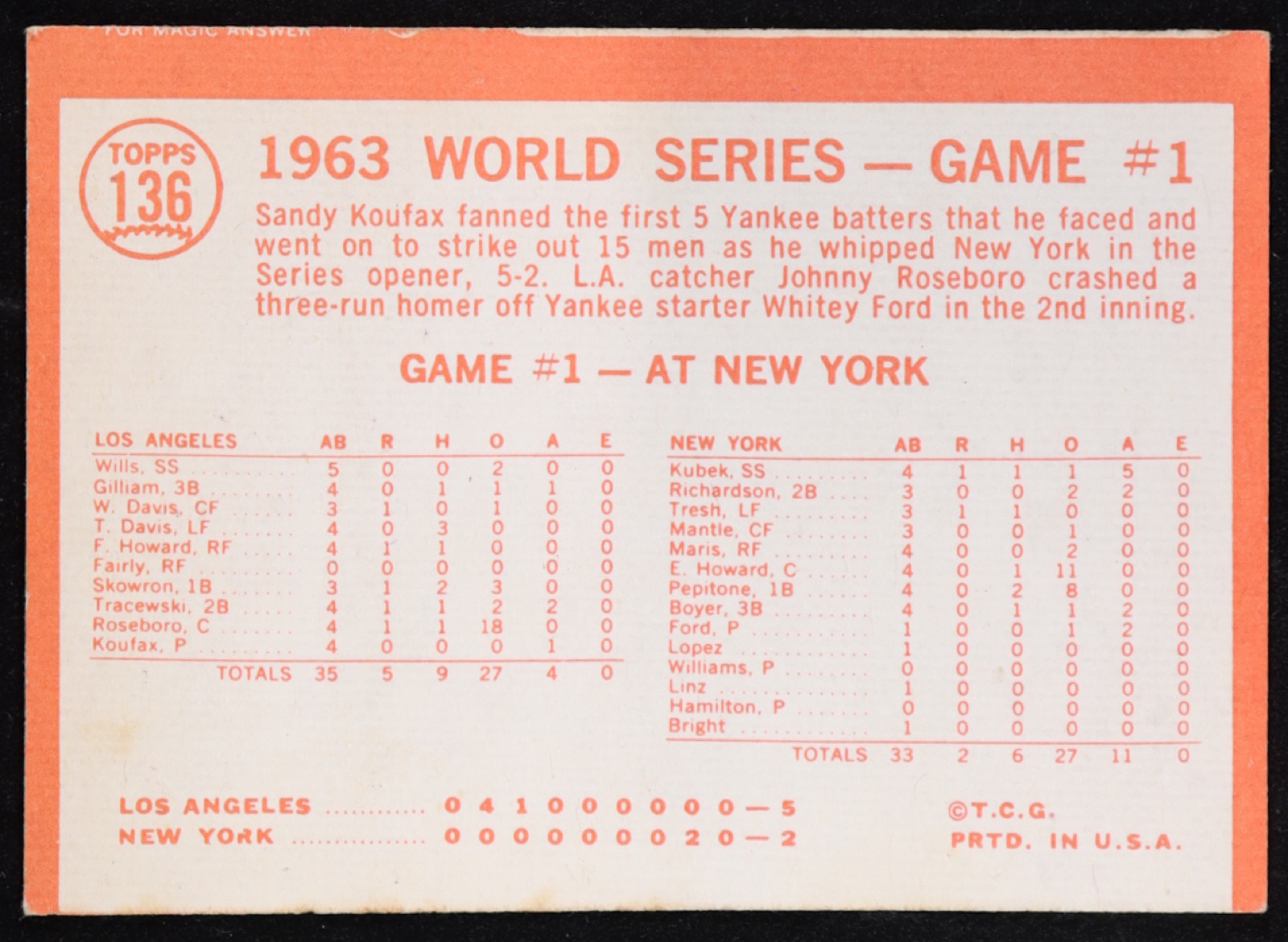 Sandy Koufax 1964 Topps #136 World Series Game 1
