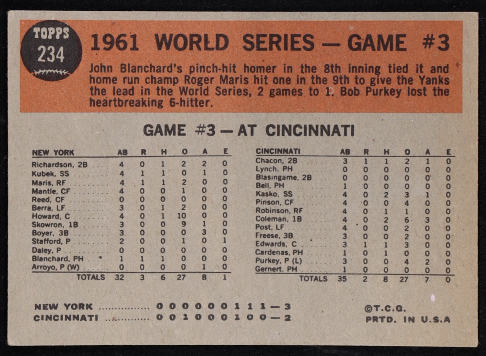 Roger Maris 1962 Topps #234 World Series Game 3