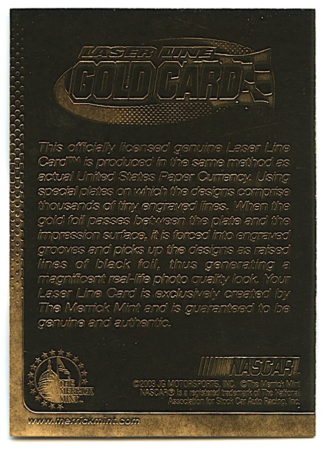 Jeff Gordon 2003 Gold Limited Edition Card from The Merrick Mint