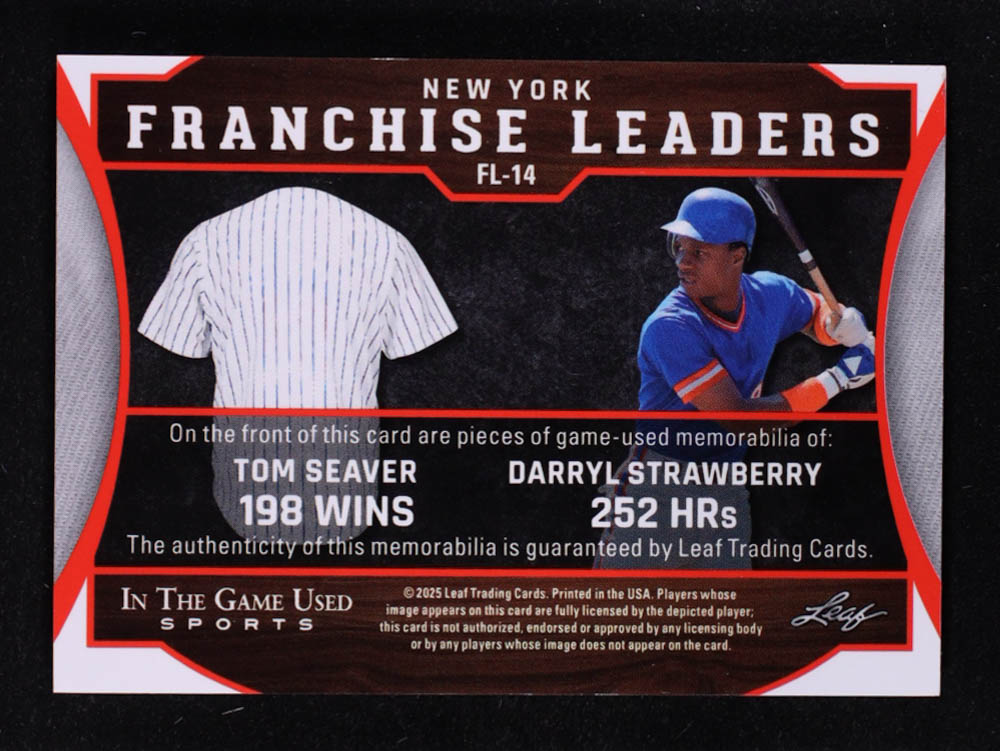 Tom Seaver / Darryl Strawberry 2025 Leaf ITG Used Sports Franchise Leaders Purple Holo Foil #FL14 #1/6