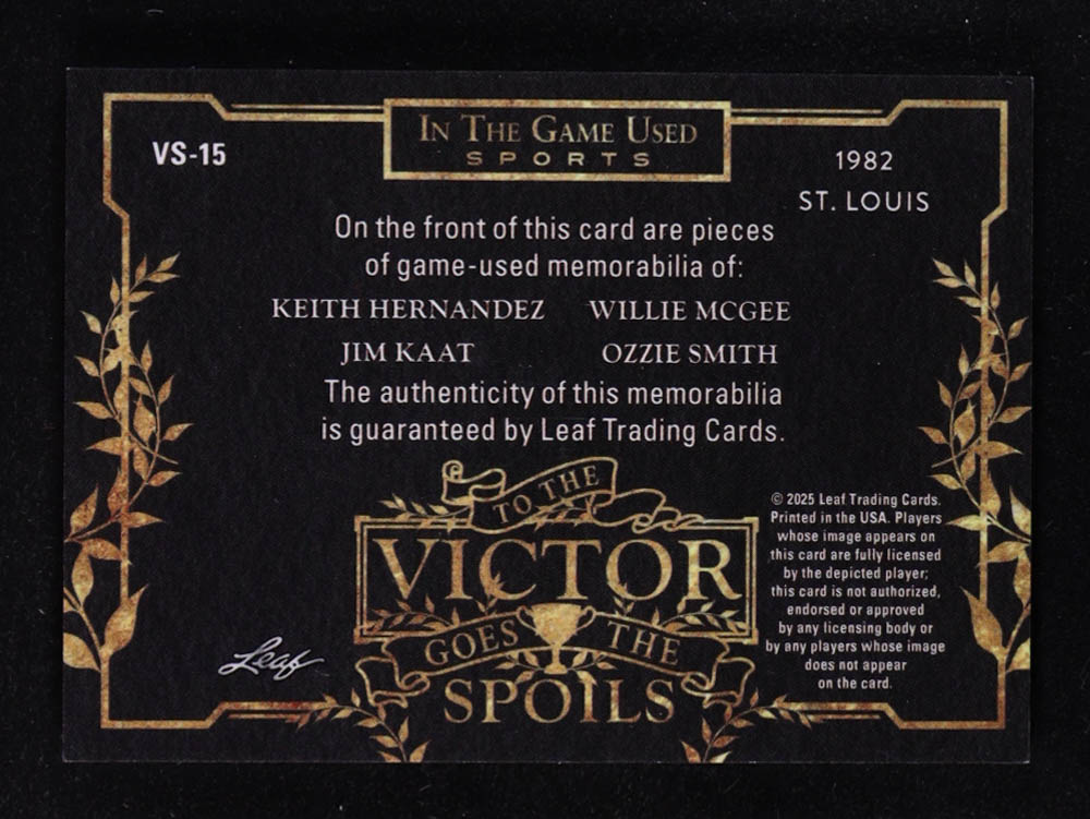 Keith Hernandez / Willie McGee / Jim Kaat / Ozzie Smith 2025 Leaf ITG Used Sports To the Victor Goes the Spoils Blue #VS15 #05/35
