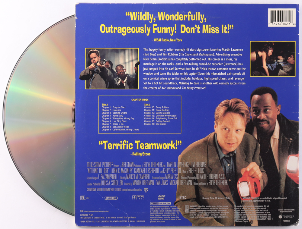 Laserdisc cover has been hand-signed by Martin Lawrence and Tim Robbins. Please note, the Laserdisc is included as shown.