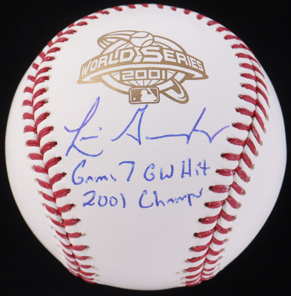 Rawlings Official 2001 World Series Baseball has been hand-signed and inscribed by Luis Gonzalez (Arizona Diamondbacks).