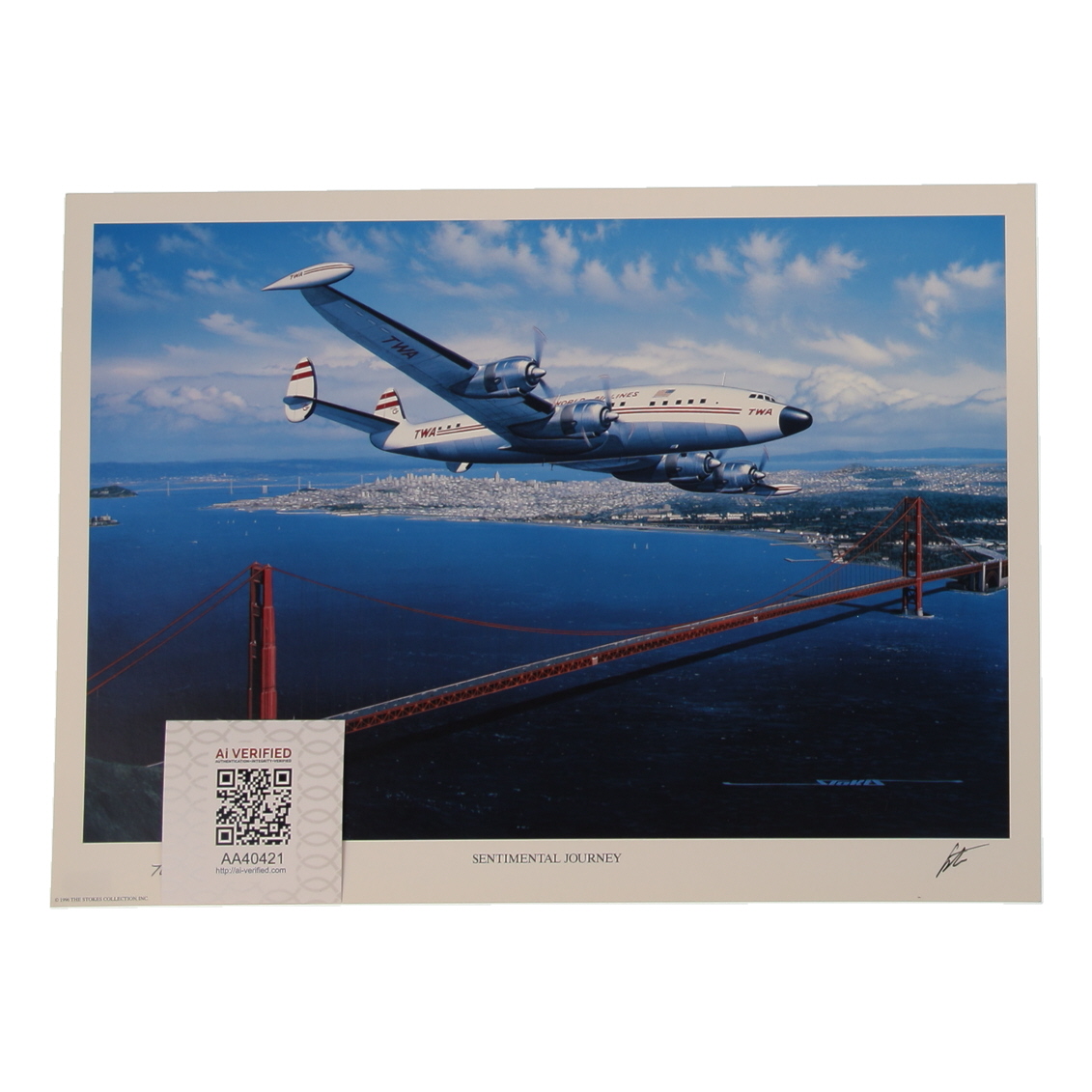 Larry Girard Signed Stan Stokes "Sentimental Journey" Lithograph Inscribed "TWA CAPT." (AIV)