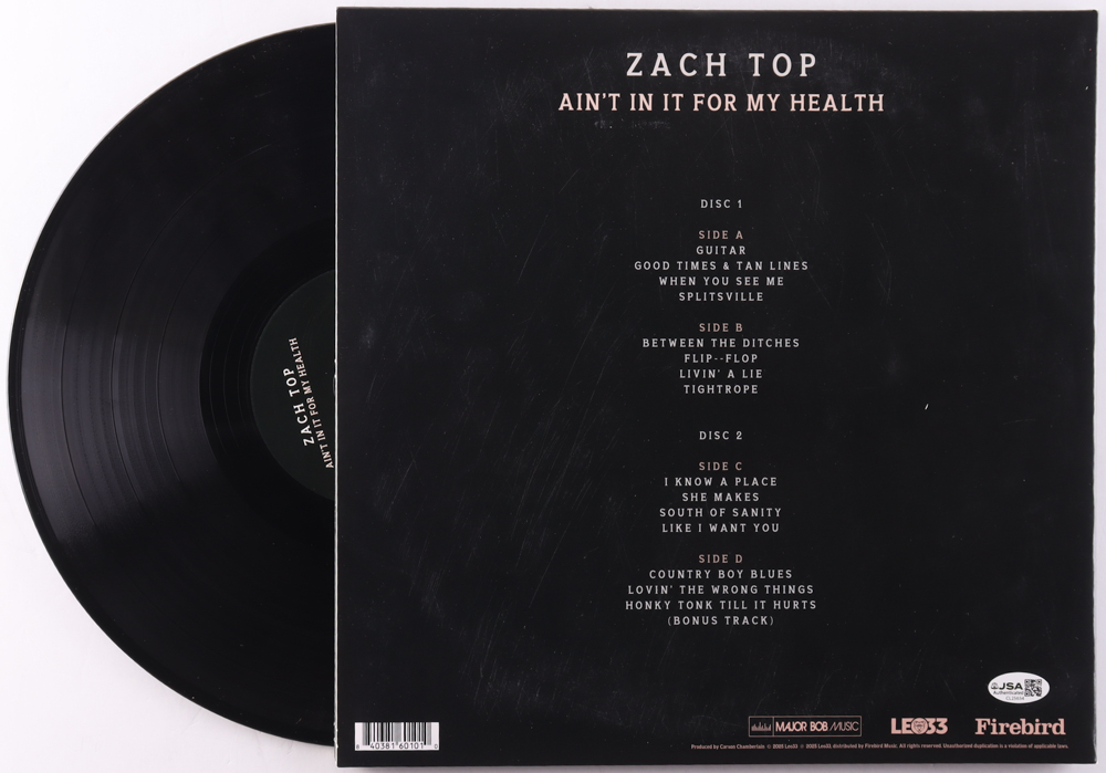 Zach Top Signed "Aint In It For My Health" Vinyl Record Album Cover (JSA)