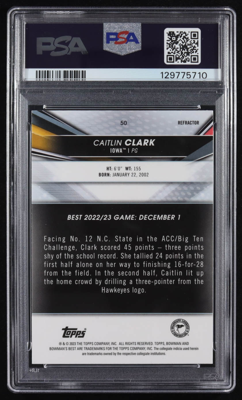 Caitlin Clark 2022-23 Bowman's Best University Refractors #50 (PSA 9)
