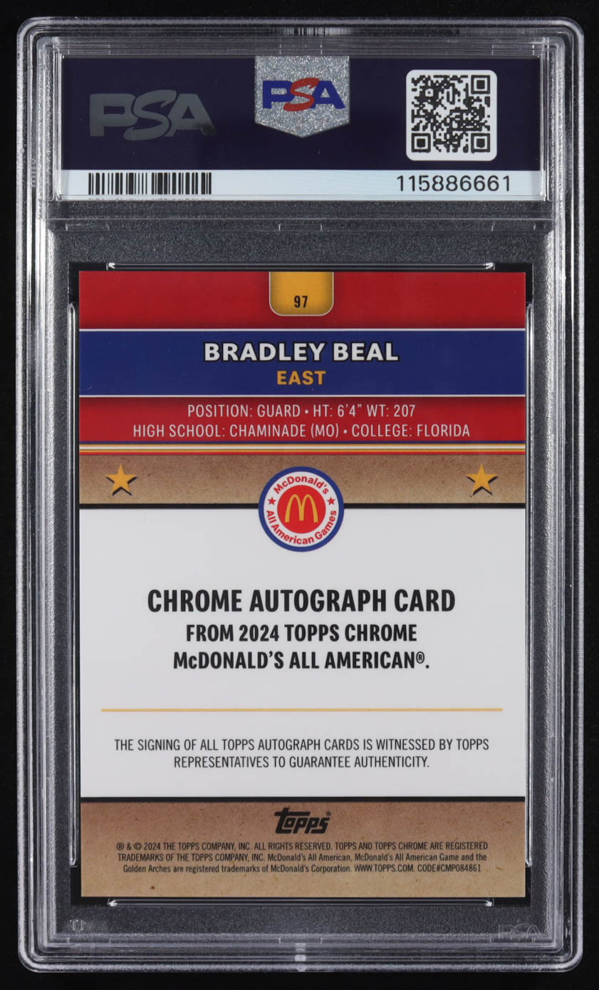 Bradley Beal 2024 Topps Chrome McDonald's All American Action Shot Autographs Tie Dye Refractors #97 #16/25 (PSA 9)