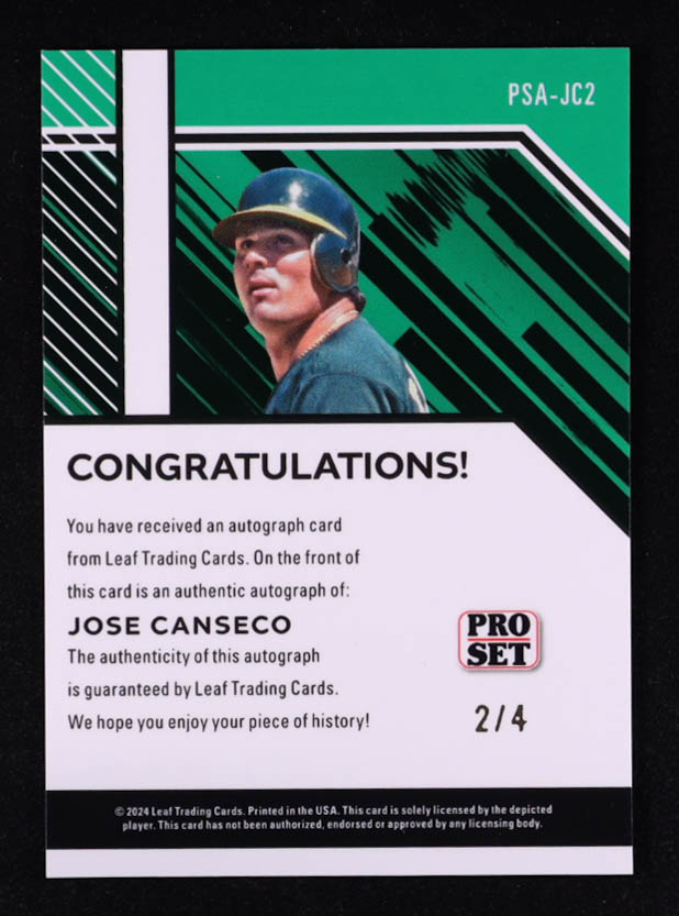 Jose Canseco 2024 Leaf Collective Pro Set Autographs Shimmer Red #PSAJC2 #2/4