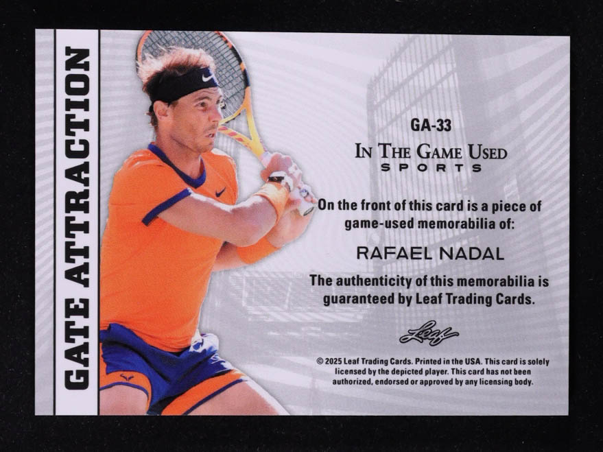 Rafael Nadal 2025 Leaf ITG Used Sports Gate Attraction Dual Relic Silver Sparkle Foil #GA33 #18/25
