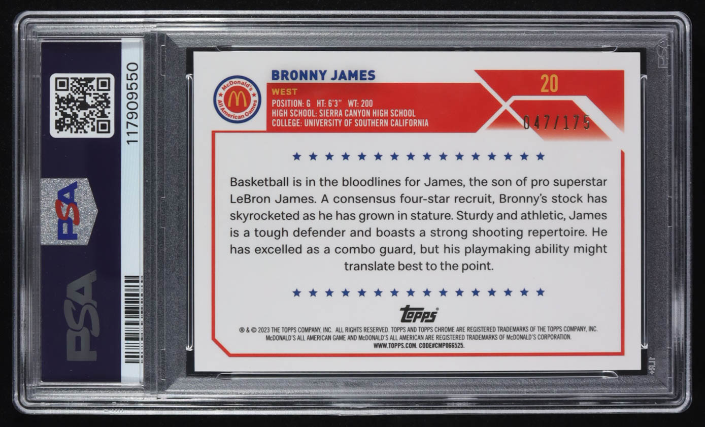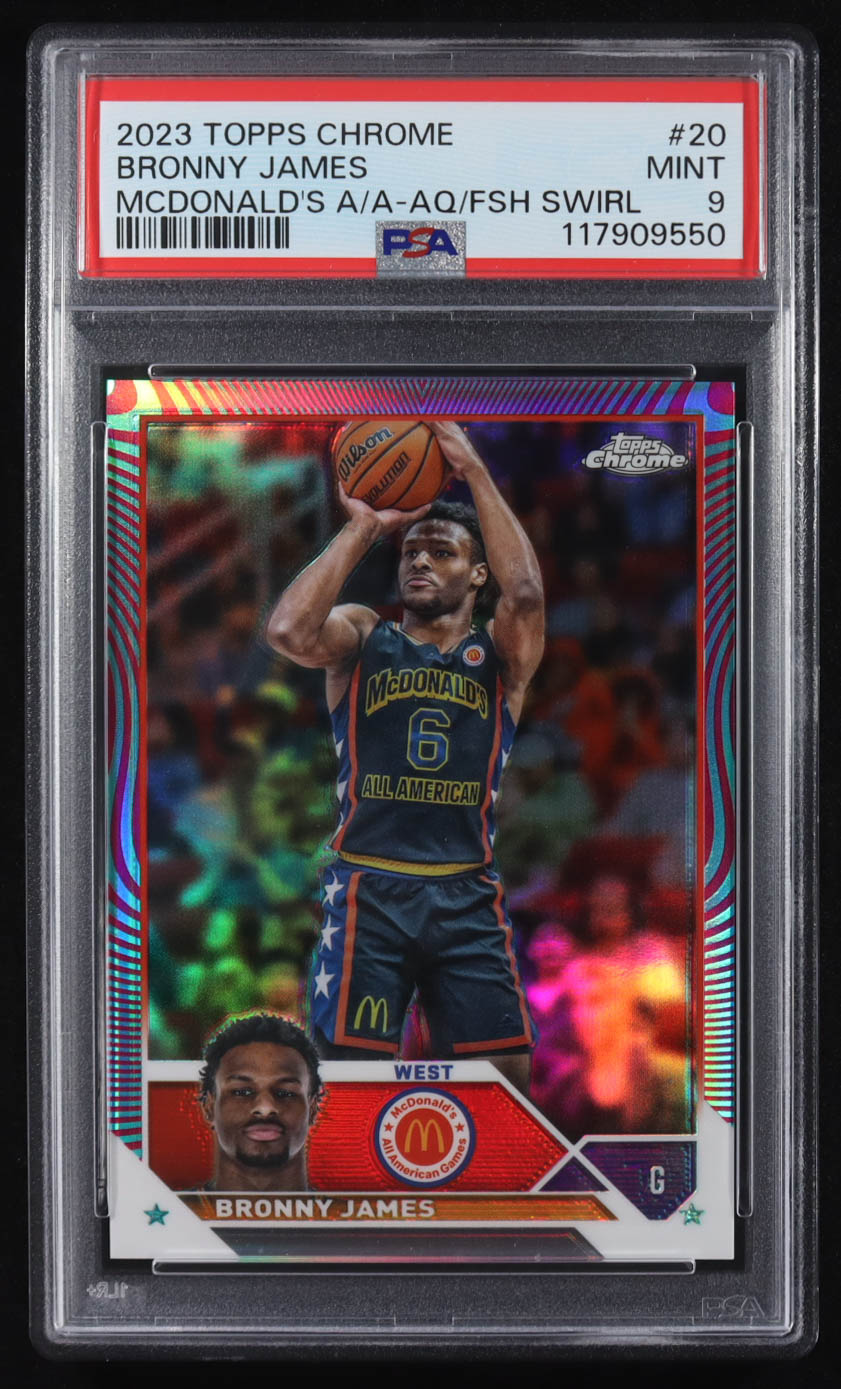 Bronny James 2023 Topps Chrome McDonald's All American Aqua Fuchsia Swirl Refractors #20 #047/175 (PSA 9)