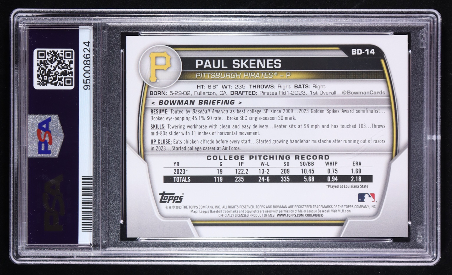 Paul Skenes 2023 Bowman Draft #BD-14 RC (PSA 10)