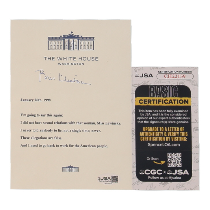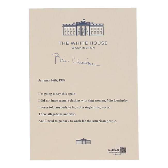 Replica White House letter measures 5" x 7" in size and has been hand-signed by Bill Clinton (42nd President of the United States).