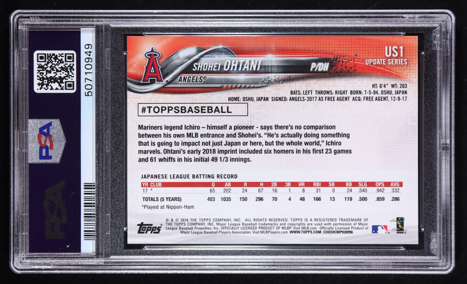Shohei Ohtani 2018 Topps Update Pitching In Red Jersey #US-1 RC (PSA 9)