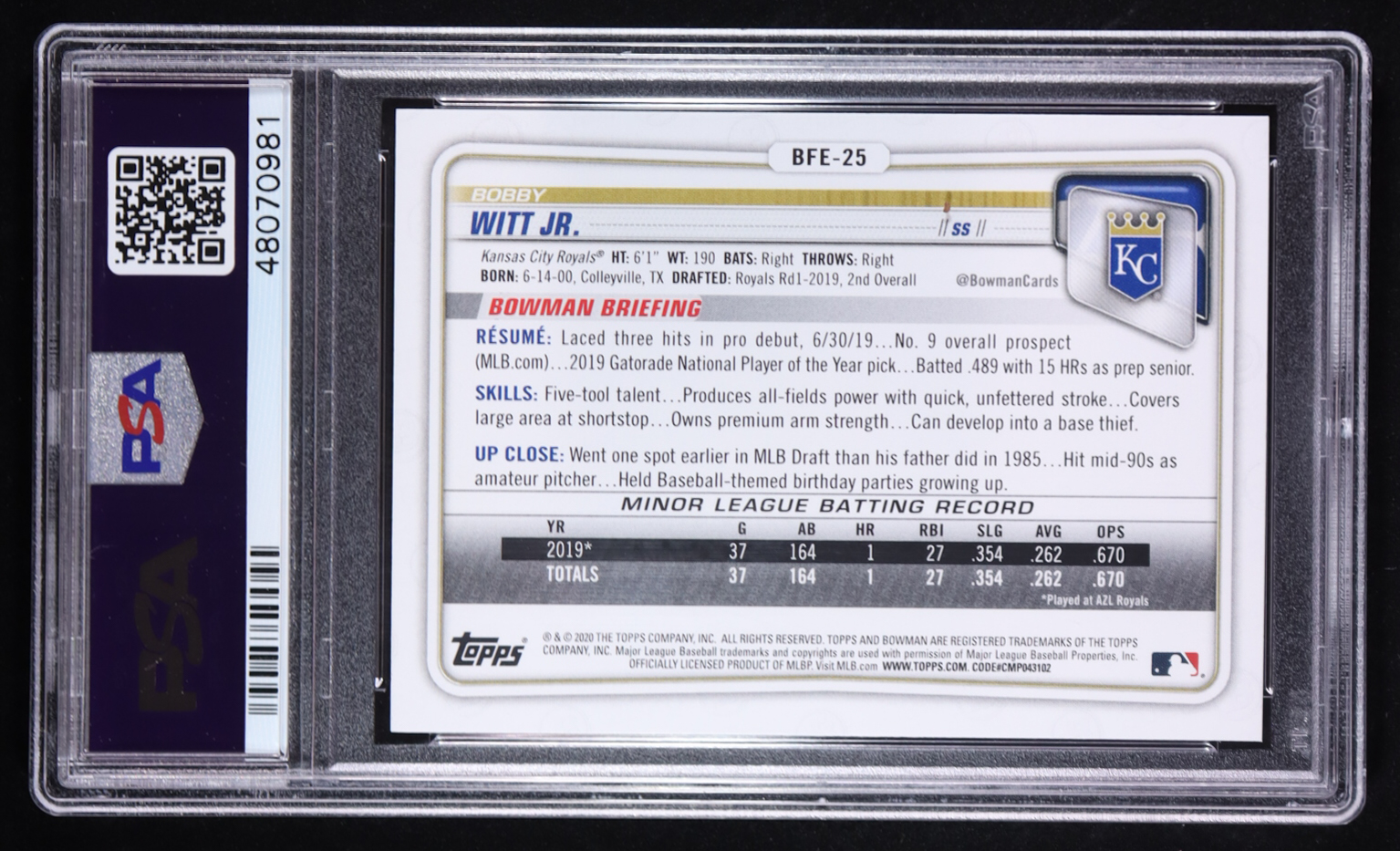 Bobby Witt Jr. 2020 Bowman 1st Edition #BFE-25 RC (PSA 10)