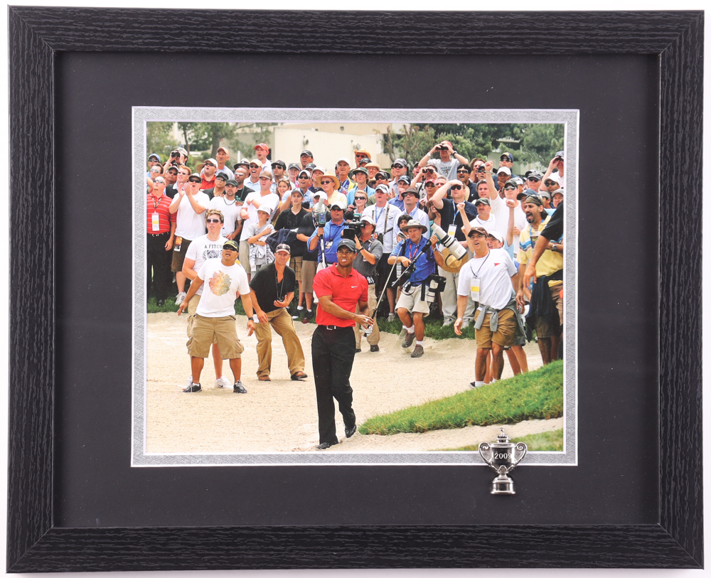 Tiger Woods at PGA Championship Framed Photo Display With Mini PGA Championship Trophy