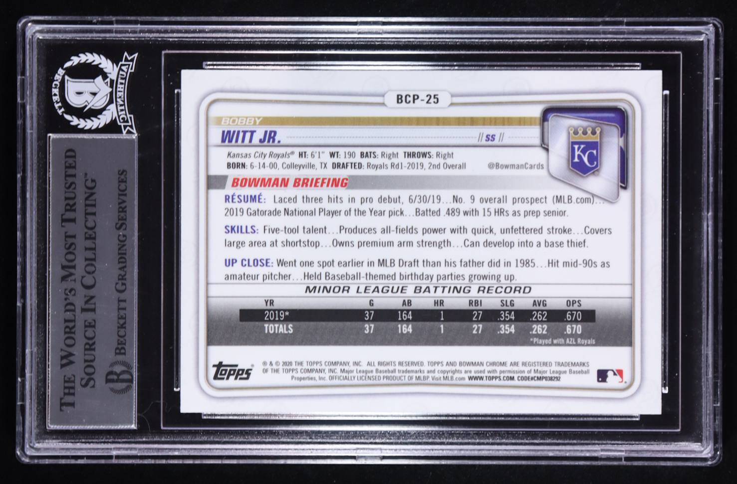 Bobby Witt Jr. Signed 2020 Bowman Chrome Prospects #BCP-25 RC (BGS)