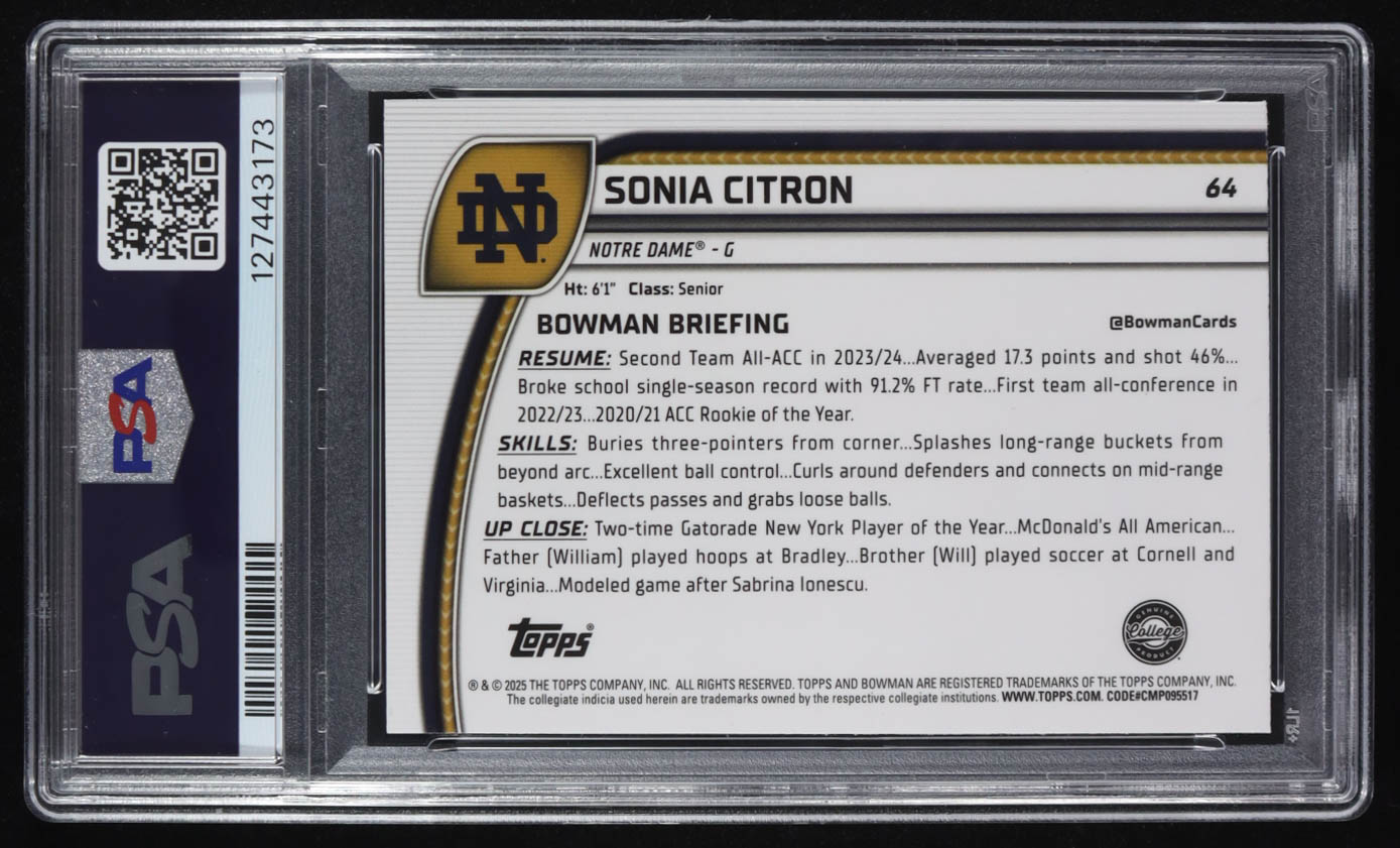 Sonia Citron 2024-25 Bowman Chrome University Reptilian Blue Refractors #64 #020/150 (PSA 8)
