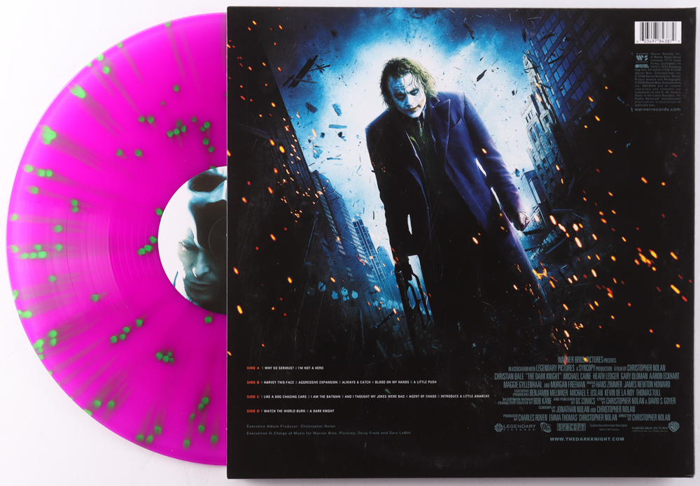 "The Dark Knight Original Motion Picture Soundtrack" vinyl record album cover has been hand-signed by Hans Zimmer. Please note, the vinyl record is included as shown.