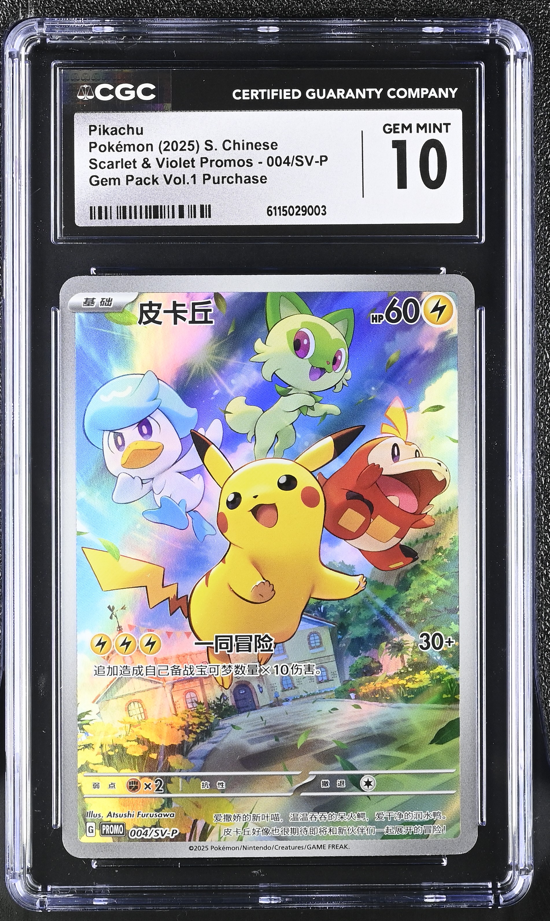Pikachu 2025 Pokemon Scarlett & Violet Promos Gem Pack Vol. 1 Simplified Chinese #004 Holo (CGC 10)
