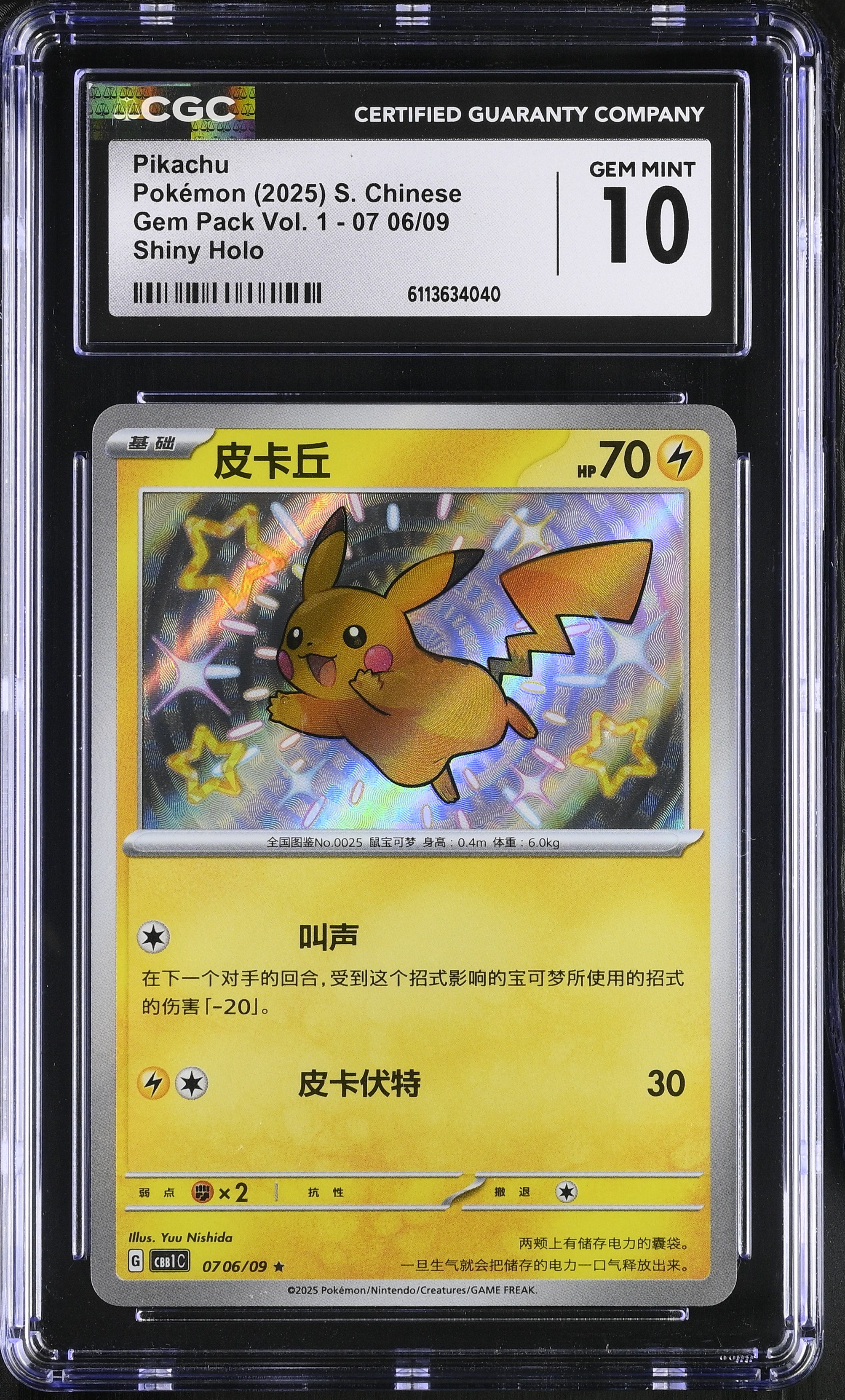 Pikachu 2025 Pokemon Gem Pack Vol. 1 Simplified Chinese #0706 Shiny Holo (CGC 10)