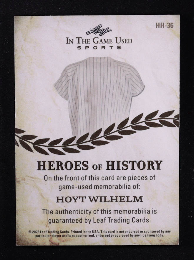 Hoyt Wilhelm 2025 Leaf ITG Used Sports Heroes Of History Triple Relic Silver Sparkle Foil #HH36 #10/10