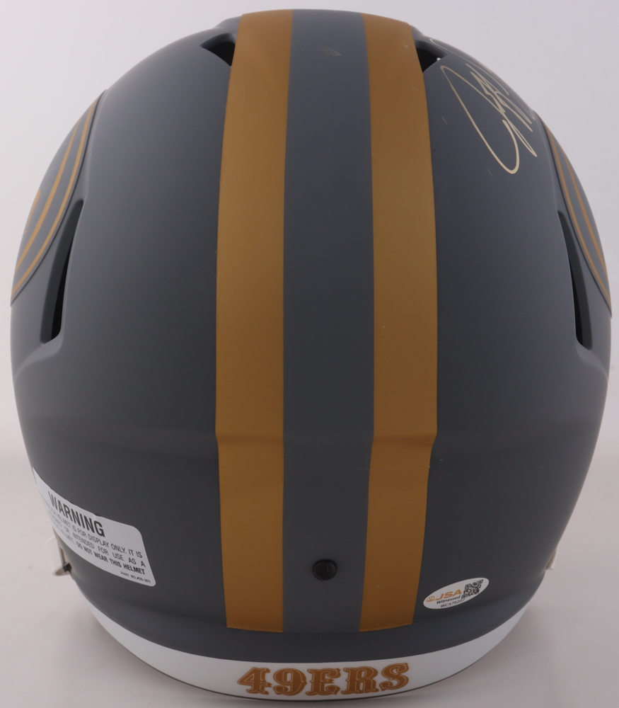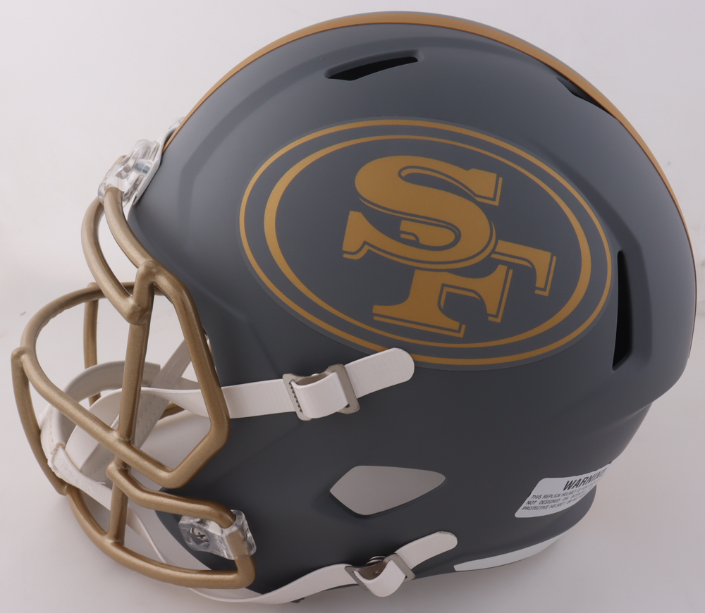 Riddell San Francisco 49ers Full-Size Slate Alternate replica speed helmet has been hand-signed by Jeff Garcia.