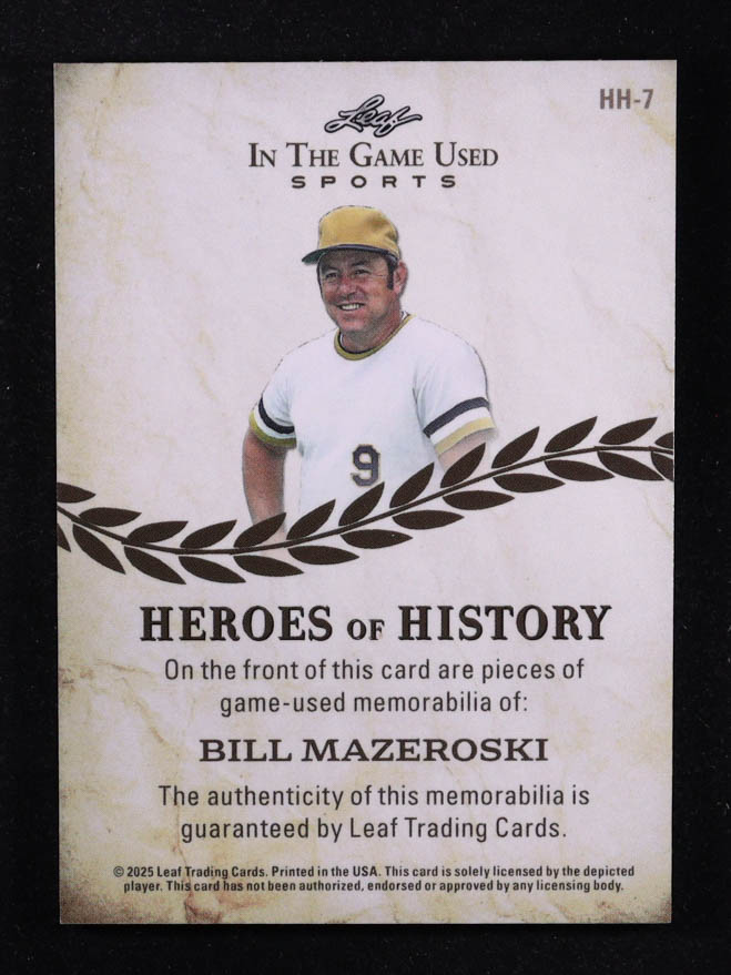 Bill Mazeroski 2025 Leaf ITG Used Sports Heroes Of History Triple Relic Purple Foil #HH7 #3/6