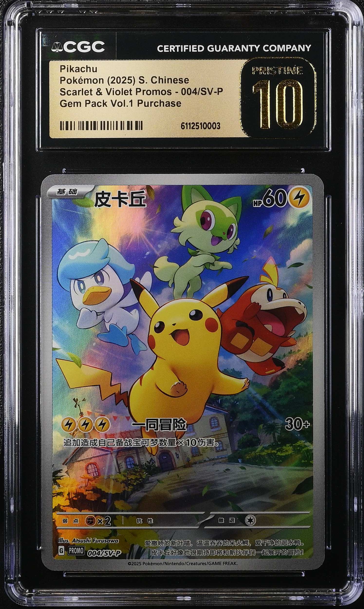 Pikachu 2025 Pokemon Scarlett & Violet Promos Gem Pack Vol. 1 Simplified Chinese #004 Holo (CGC 10 | Pristine Black Label)