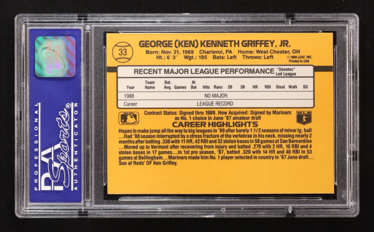Ken Griffey Jr. 1989 Donruss #33 RR RC UER/Born in Donora, PA (PSA 8)