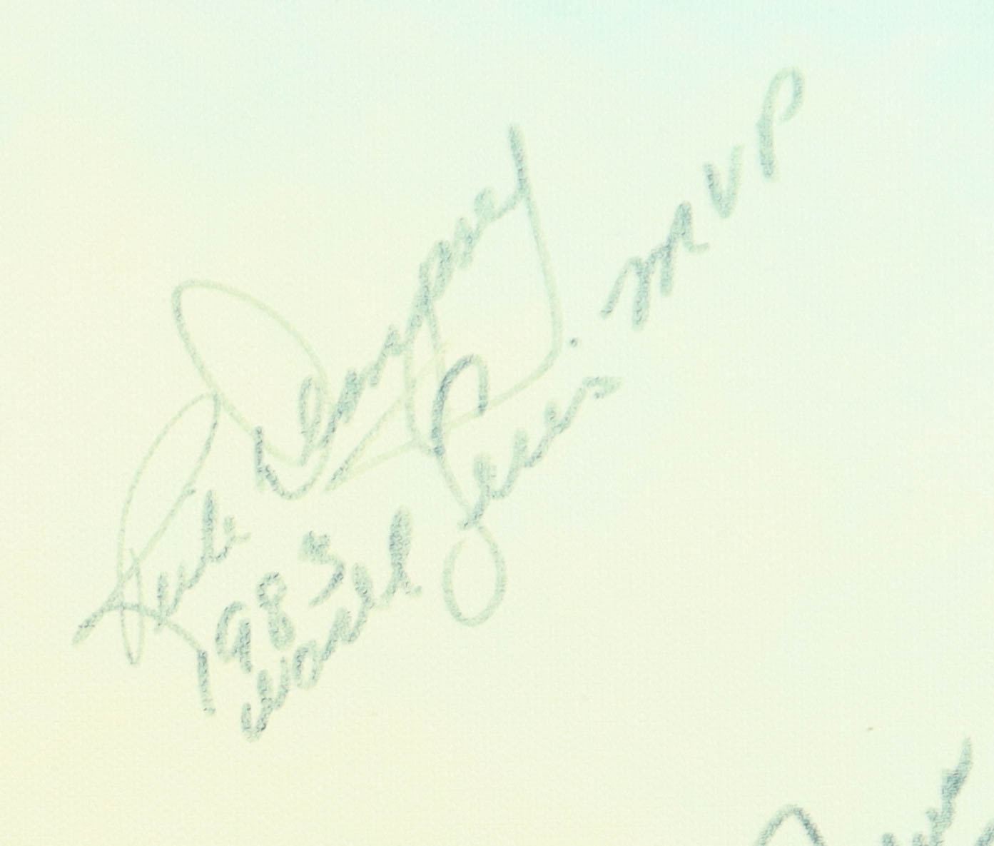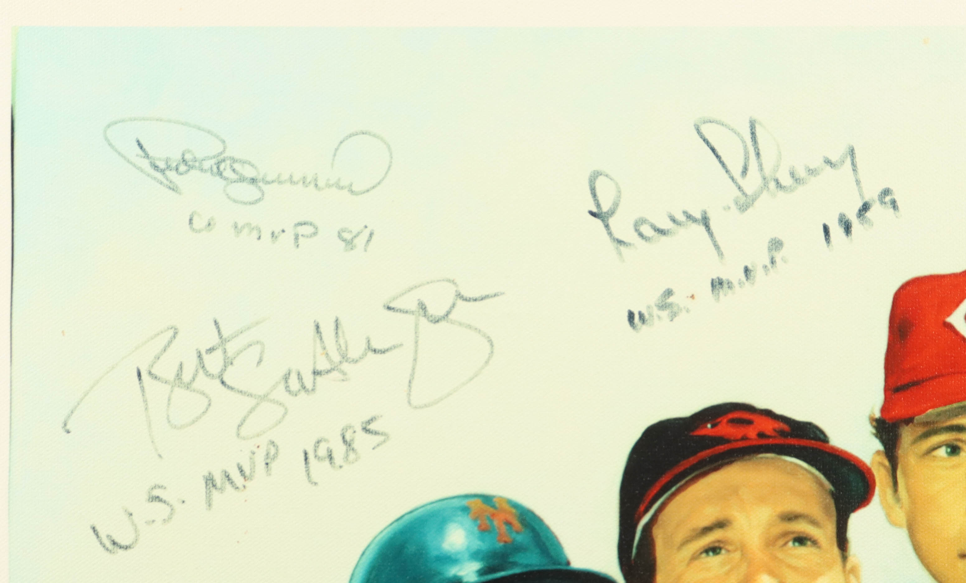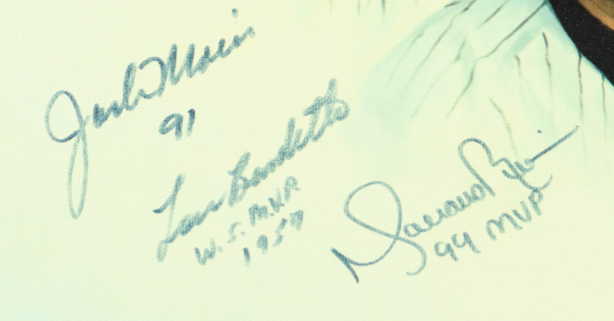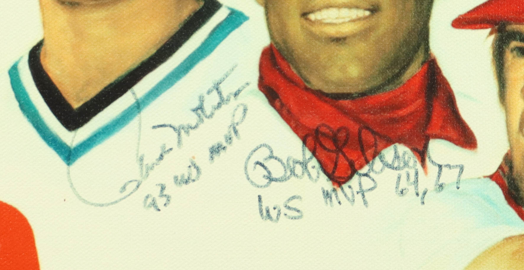 Other notable names on the canvas include Brooks Robinson, Frank Robinson, Rollie Fingers, Whitey Ford, Phil Rizzuto, Jack Morris, Bob Gibson, Mike Schmidt, Tom Glavine, Paul Molitor, Pete Rose, Johnny Podres, Orel Hershiser, Ron Cey, and Bobby Richardson!
