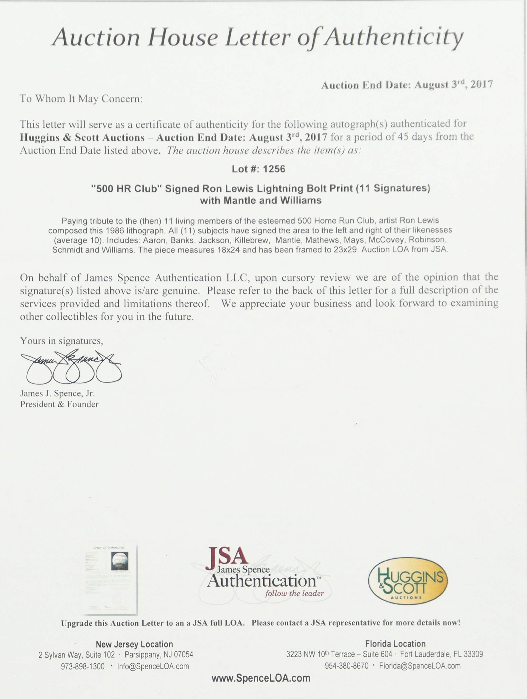 The photo includes a James Spence Authentication (JSA) Auction House LOA for authenticity purposes.
