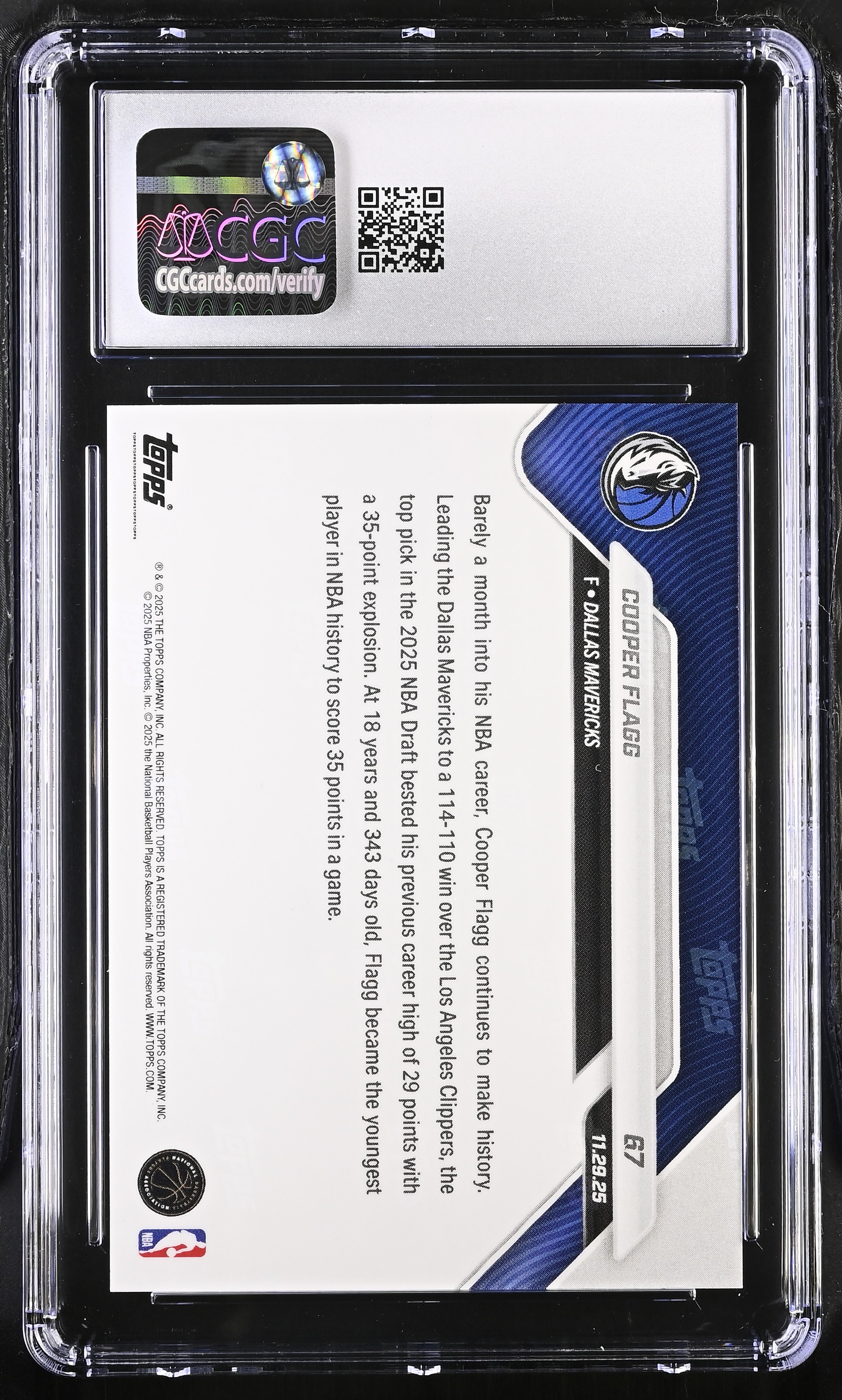 Cooper Flagg 2025-26 Topps Now #67 RC (CGC 9)