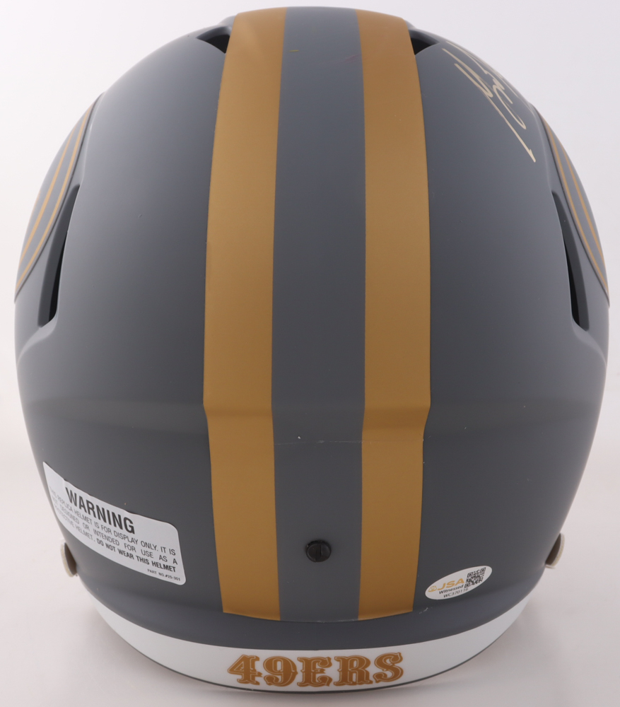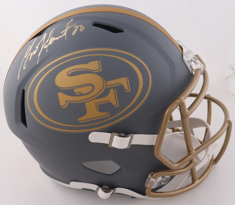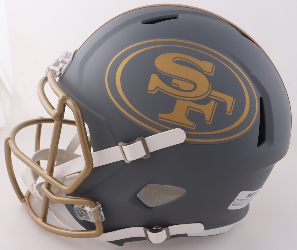 Riddell San Francisco 49ers Full-Size Slate Alternate replica Speed helmet has been hand-signed by Garrison Hearst.