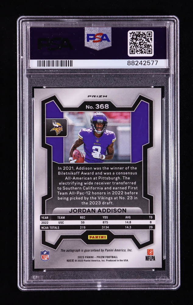 Jordan Addison 2023 Panini Prizm Autographs Prizms Silver #368 RC (PSA 9)