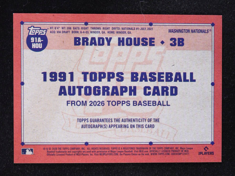 Brady House 2026 Topps '91 Topps Autographs #91AHOU RC
