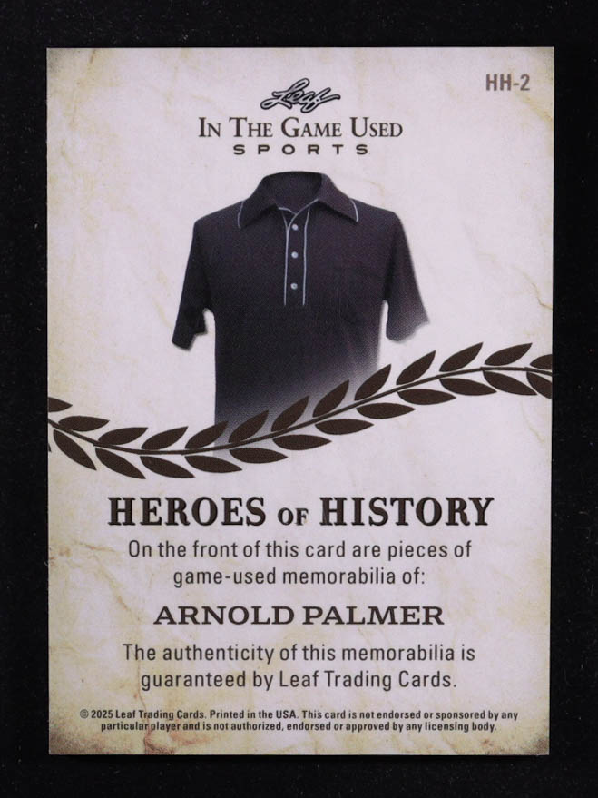 Arnold Palmer 2025 Leaf ITG Used Sports Heroes Of History Triple Relic Black Foil #HH2 #1/3