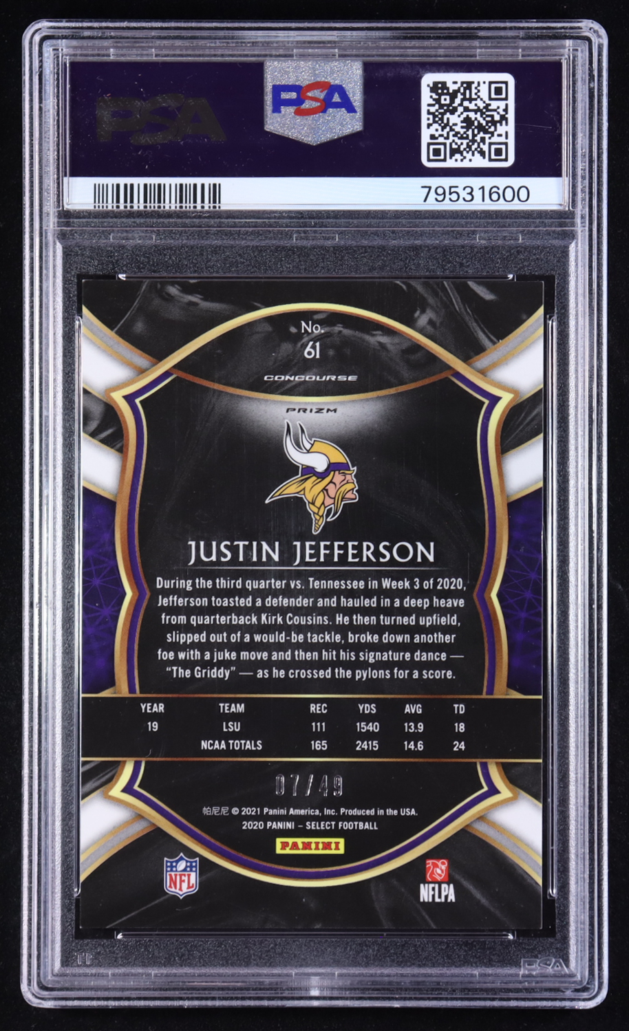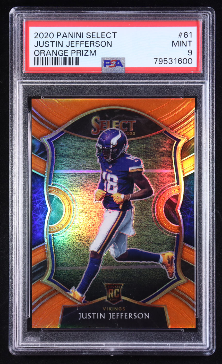 Justin Jefferson 2020 Panini Select Concourse Orange Prizm #61 RC #07/49 (PSA 9)