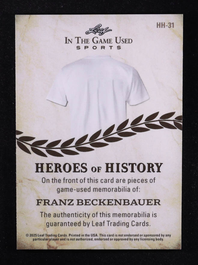 Franz Beckenbauer 2025 Leaf ITG Used Sports Heroes Of History Triple Relic Emerald Foil #HH31 #1/2