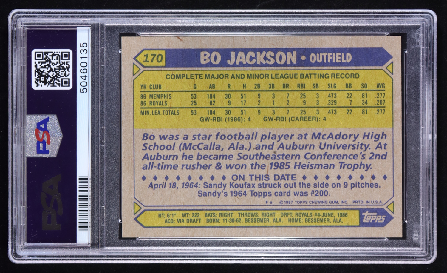 Bo Jackson 1987 Topps Future Stars #170 RC (PSA 8)