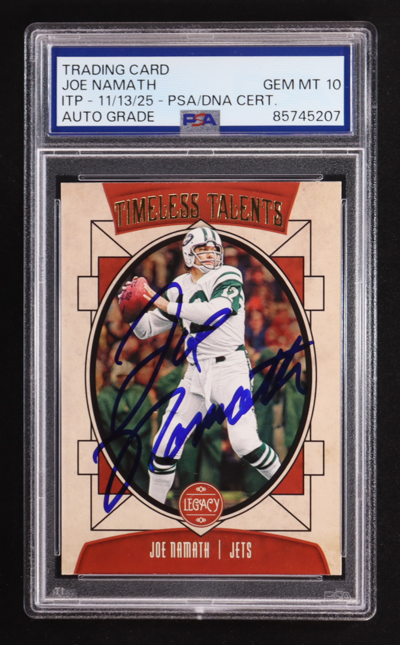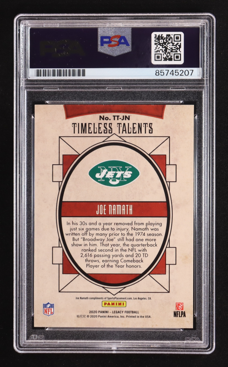 Joe Namath Signed 2020 Panini Legacy Timeless Talents #10 (PSA | Autograph Graded 10)