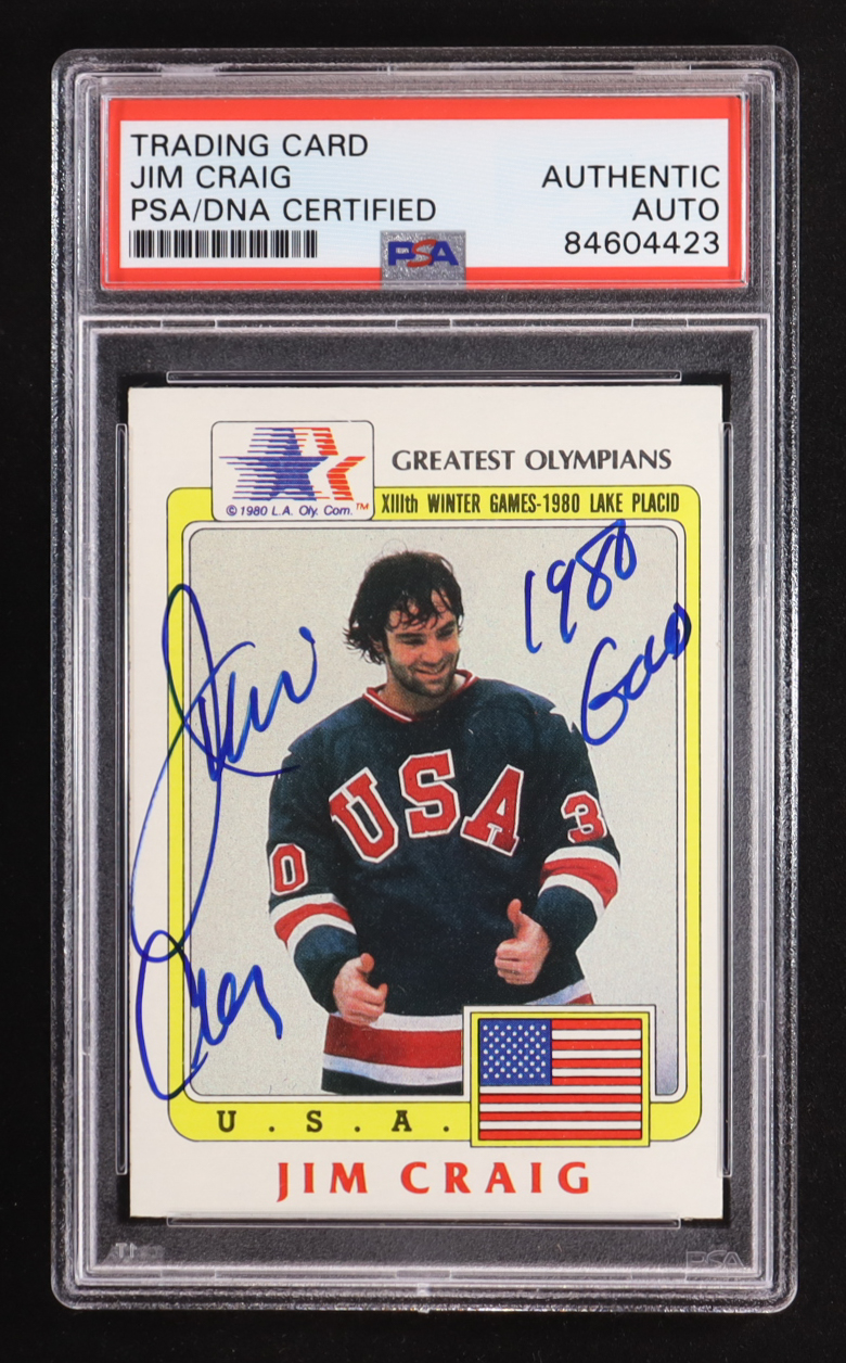 Jim Craig Signed 1983 Topps History's Greatest Olympians #33 Inscribed "1980 GOLD" (PSA)