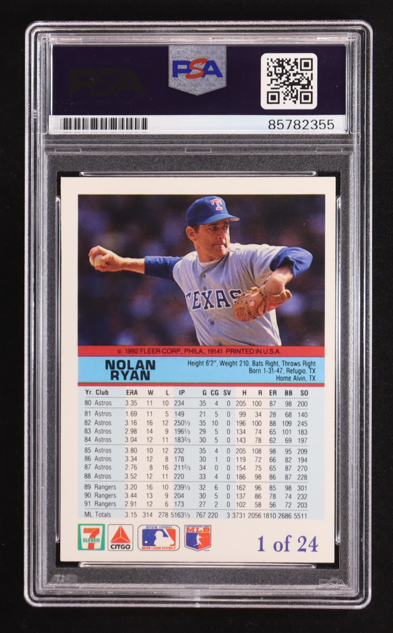 Nolan Ryan Signed 1992 Fleer Citgo The Performer #1 (PSA)