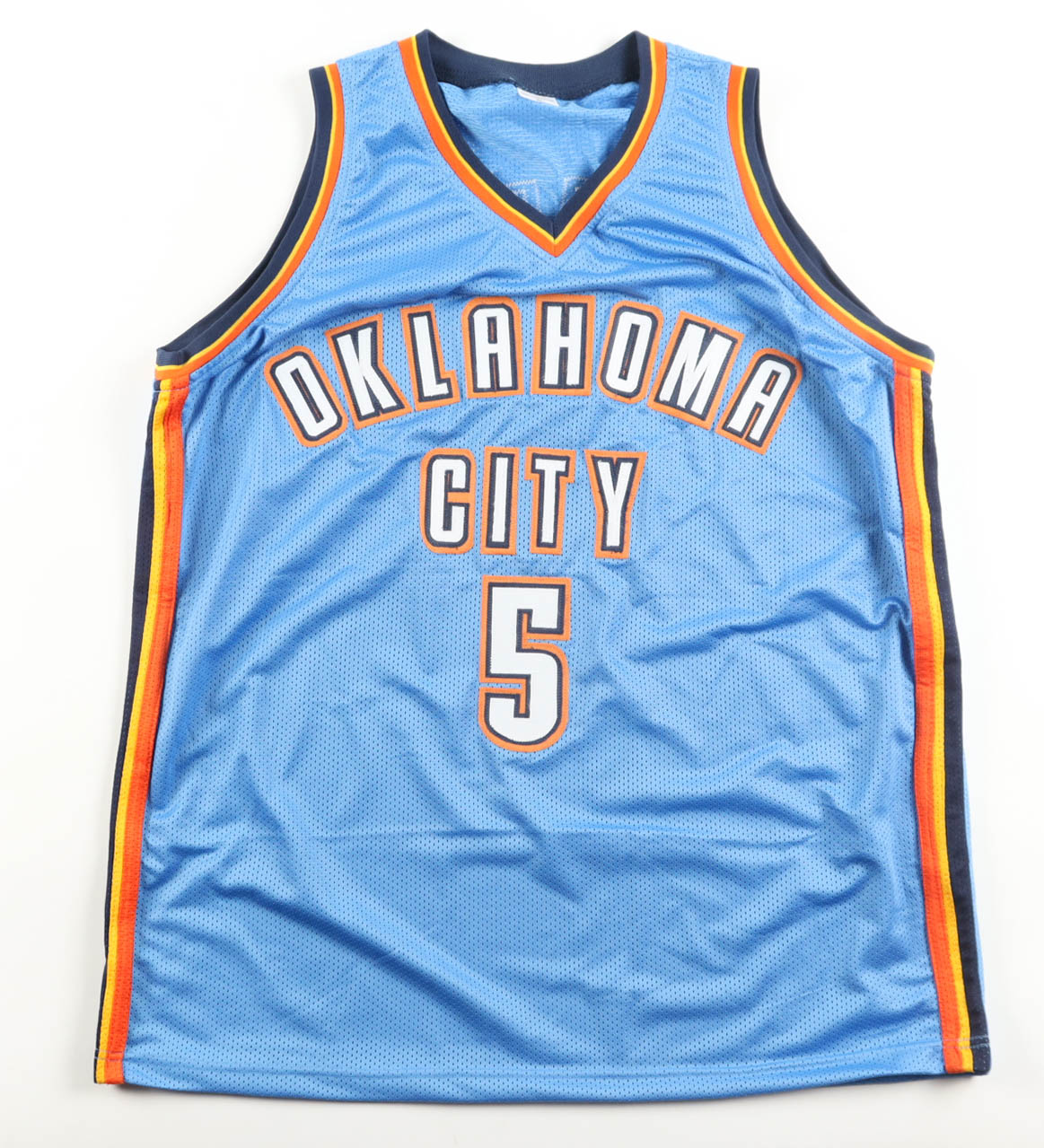 Custom jersey with everything sewn on, size XL. Hand-signed by Luguentz Dort.