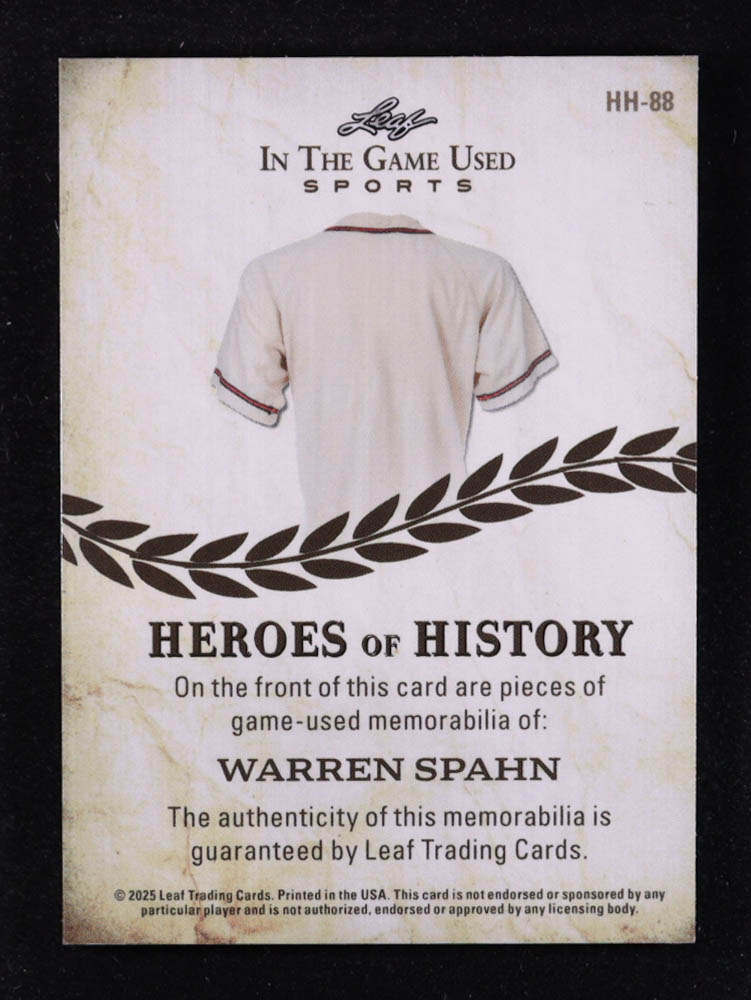 Warren Spahn 2025 Leaf ITG Used Sports Heroes of History Blue #HH88 #15/20