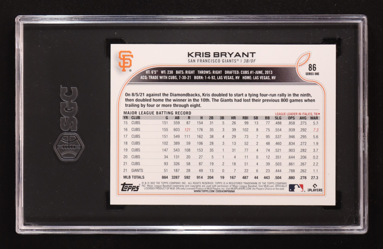 Kris Bryant 2022 Topps Base Set Photo Variations Signing Autographs #86 (SGC 10)