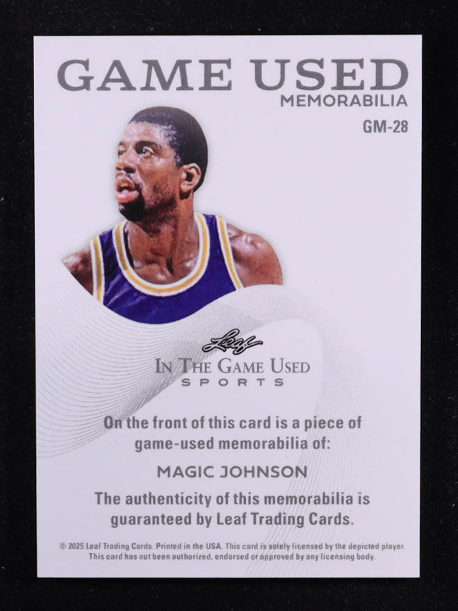 Magic Johnson 2025 Leaf ITG Used Sports Game Used Memorabilia Sparkle Foil JSY #GM28 #27/30