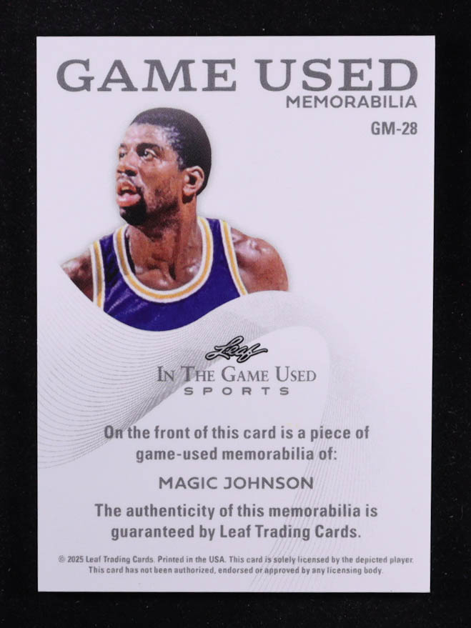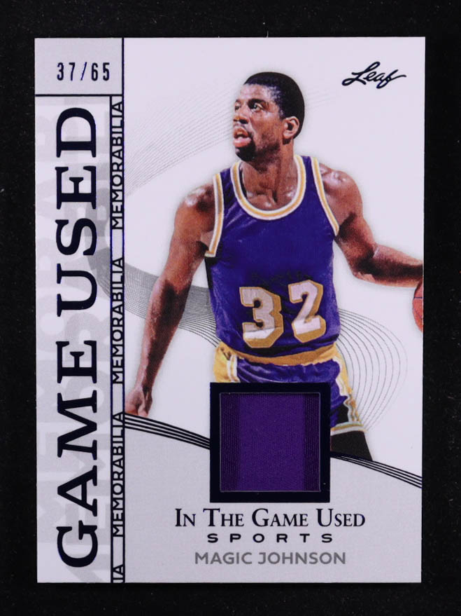 Magic Johnson 2025 Leaf ITG Used Sports Game Used Memorabilia Blue Foil JSY #GM28 #37/65